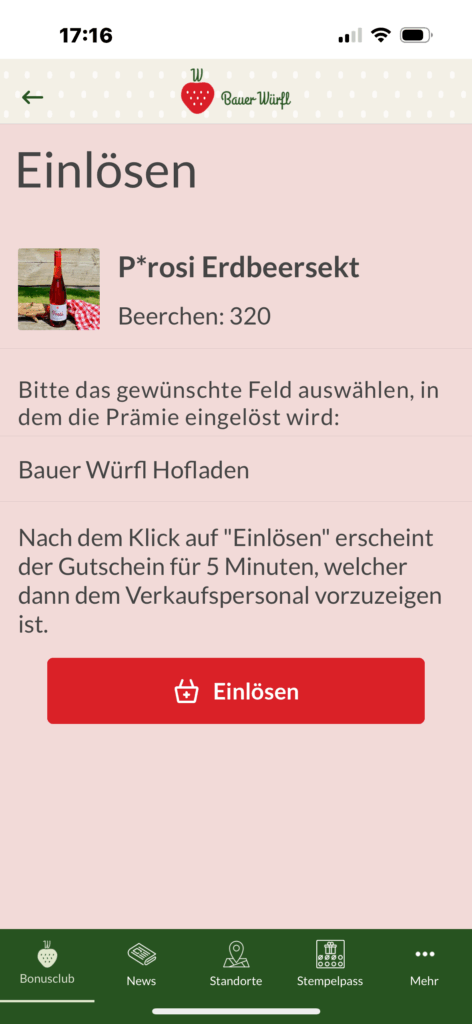 Die Einlösung für das 10. Körbchen geht analog der Prämieneinlösung